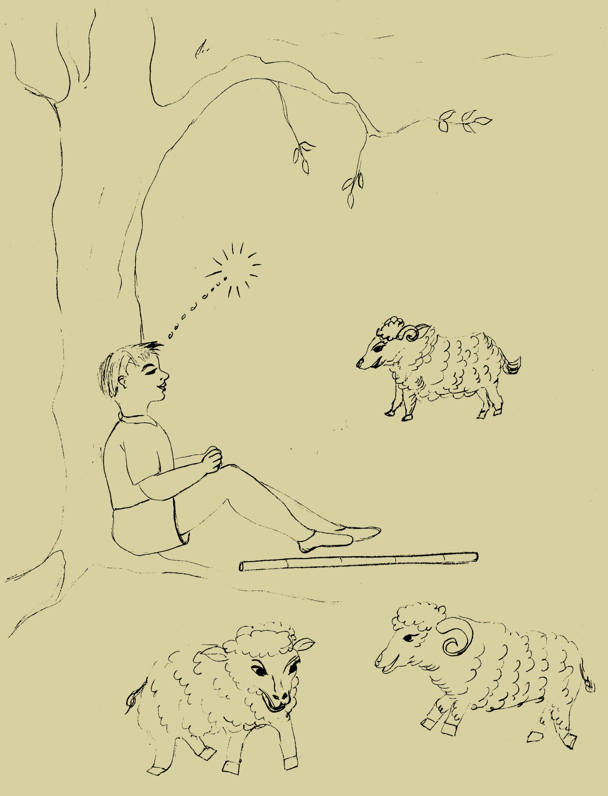 One day while his sheep were grazing he sat under a tree and started day dreaming. He prayed to God saying, “Dear God, I wonder where you live and what you look like. How do you pass your time? What do you like to eat?” As the afternoon sun grew hotter the boy continued, “Dear God, if you come to meet me, I shall show you the greenest pastures. I shall feed you the freshest and the juiciest grass. I shall bathe you if your hair gets dirty. And, if you get lice in your hair, I shall pluck out the lice too. Oh! Please come to see me God. I shall get you the fresh water from the mountain spring to drink and shall fan you with these spruce leaves, if you lie down for a siesta in the afternoon …” The boy continued his innocent jabbering.