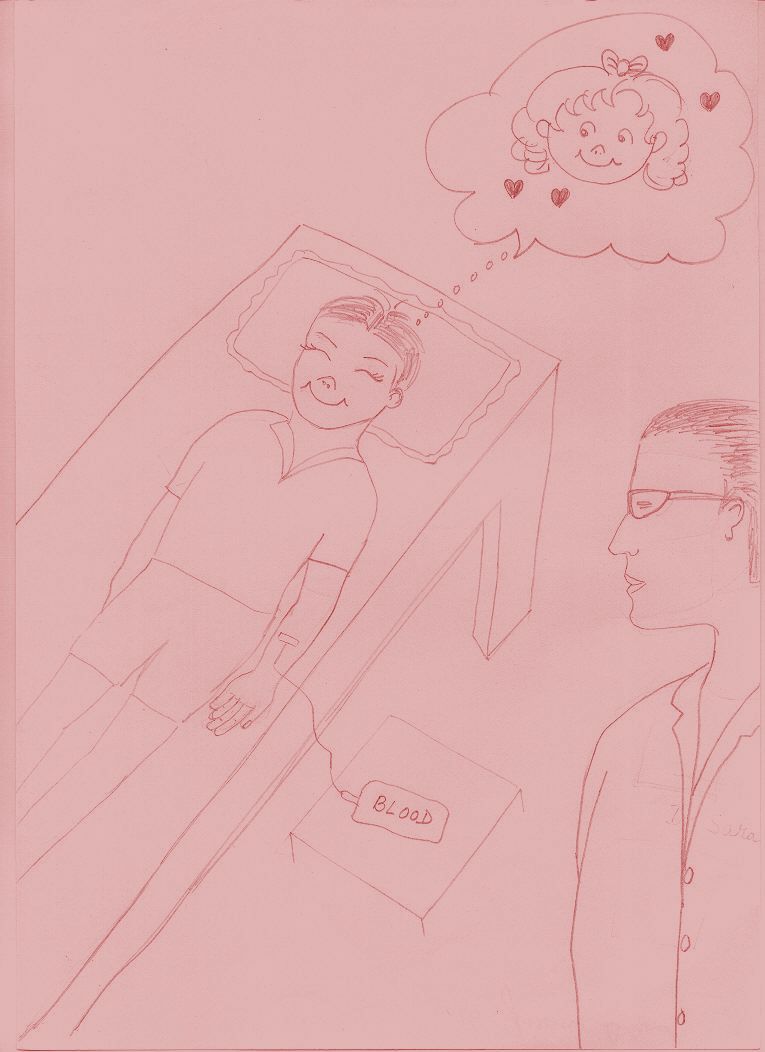 The doctor held his hand and lay him down on the stretcher. He inserted a fine needle into his arm and the blood started to tickle into the tube. The little boy looked nervously at the tube that led to the bottle and asked, “Doctor, will I start to die right away?”
