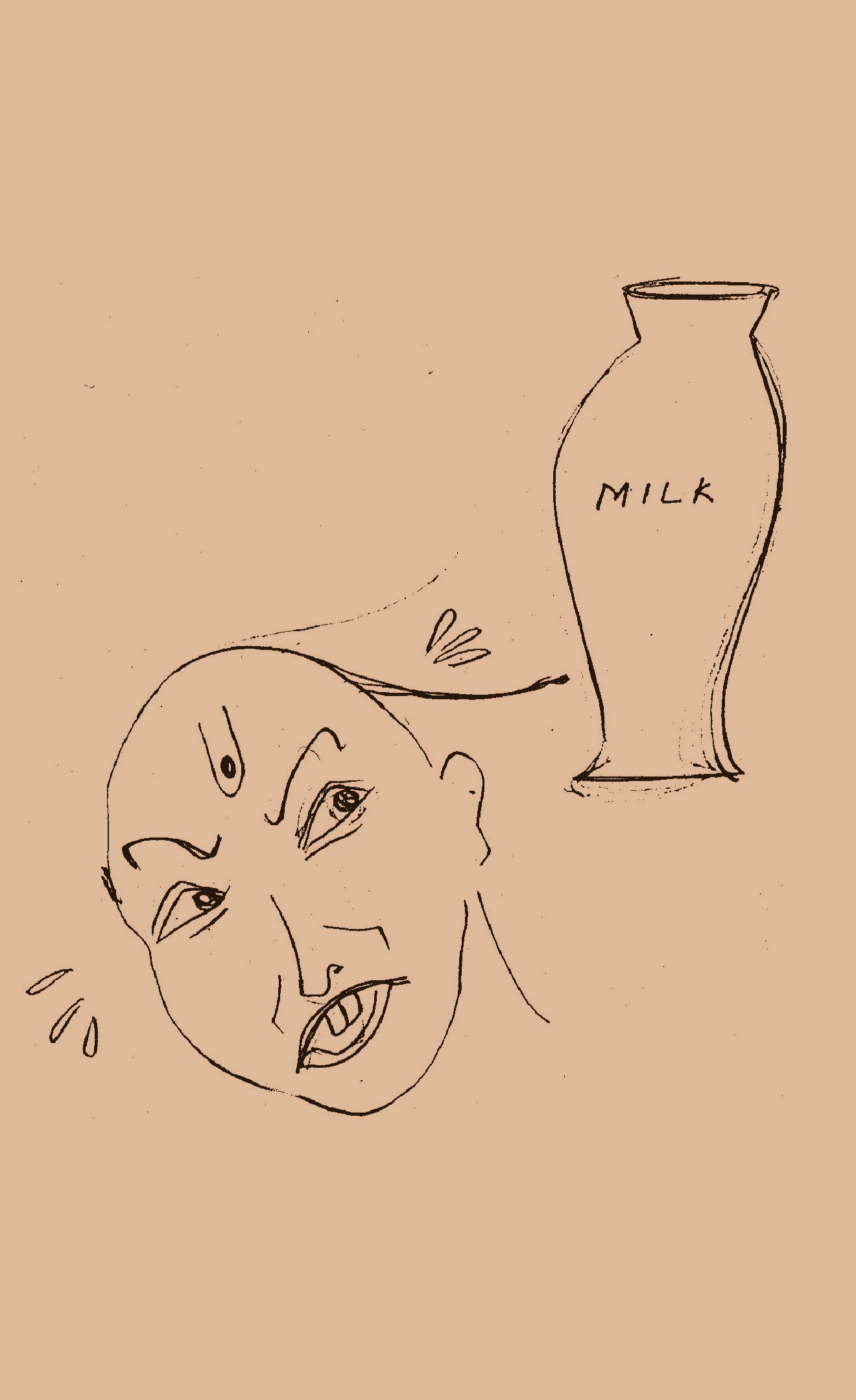 On the occasion of Shiv Rathri, a huge vessel was placed at the door of the temple for collection of milk. A small notice was placed alongside saying, “Anyone desiring to contribute milk for the Rudrabhishekham (Ceremonial bath of the Shiva lingam) may pour it into this vessel.”