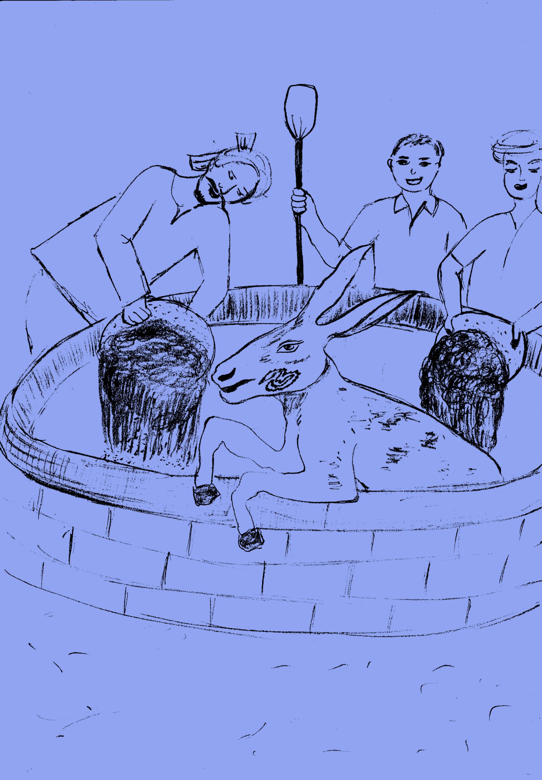 A donkey once fell into an old dry well. The poor animal cried piteously all night. The villagers were quite helpless. There was no way they could think of, to get the poor creature out. Having got tired of hearing his continuous screams for help, the villagers decided to resort to ‘mercy-killing’. They all gathered around the well and started shoveling mud into the well in order to bury the donkey in its well- shaped grave.