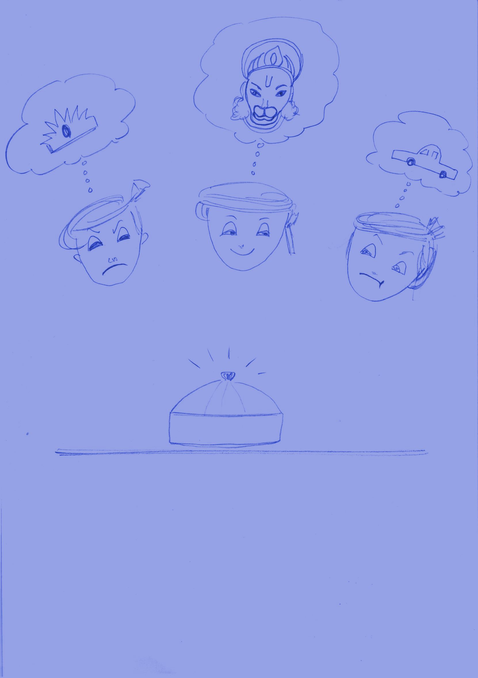 So, all of them went to bed hungry. In the morning they sat together to narrate their dreams. They kept the chapatti box in the middle. The first man said, “I dreamt that in my past birth I was an Emperor. I had a huge empire and a huge army. I had many beautiful queens and many strong sons and beautiful daughters. I had hundreds of servants and maids to do my bidding. I was a great man. The world hailed me as the greatest Emperor of all times.”