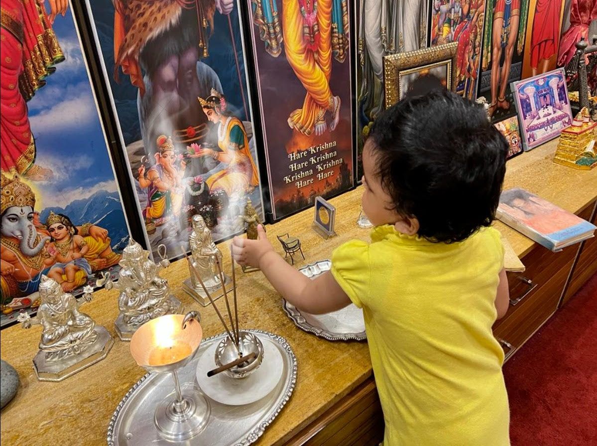 We as a family do puja together every Sunday. One such day, I was fascinated by my one year old granddaughter trying to catch the smoke emanating from the aggarbatti in my puja room. I smiled … these are the vibes I want her the catch … subtly but surely!