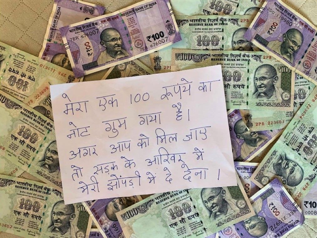 The man said, “Ma, I saw the note with your message on the lamppost. Your currency note had flown away just a few feet away, but I guess you could not see it. Here, take it …”