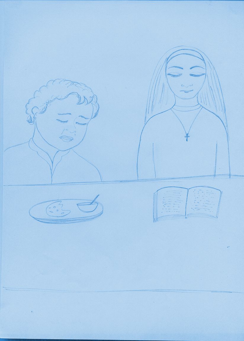One by one the other children finished their meal and left. Madan was left alone. Sister came and sat next to him. “Madan, why aren’t you eating?” “Sister, the dal is burnt, I can’t eat it.” “Madan, you asked for a double helping. You should have kept it at that measure. Now, you’ll have to finish it.” “I can’t eat it Sister. I’ll be sick if I do.” “You’ll have to eat it, whatever it is,” she said firmly. Madan was defiant. Sister was firm as a rock. It was a cold winter night. The stone floor of the dining room was freezing. It started to rain. The chill increased. Sister sat next to Madan, reading her Bible. Madan was sulking. “Please, sister,” he pleaded. “No!” she said sharply.