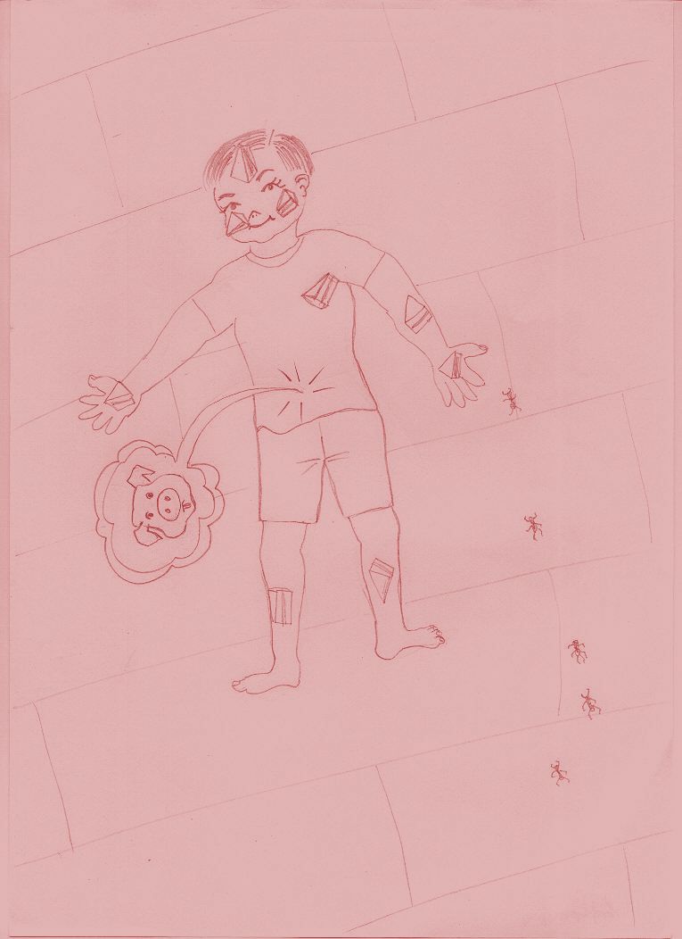 Well, all of them ganged up against the poor stomach and the boy went hungry all day. Next morning mother tried to coax him to eat some delicious chocolate cake. His mouth watered but he was obstinate. An innocent thought crossed his mind. He cut the cake into pieces and placed them on his legs, cheeks, arms, head and hands, saying, “That is for your nourishment.” But that could not give energy to the starving body. After sometime the ants started smelling the rich chocolate and started gathering around.