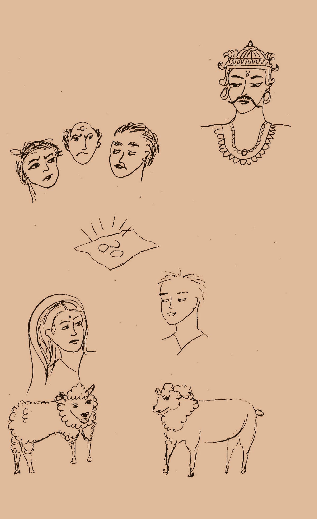 The boy called the neighbour, the village head man, caretaker and the Brahmin’s wife. King Bhoja had also heard of the shepherd boy, so he too decided to go and watch the Shepherd boy decide the case.