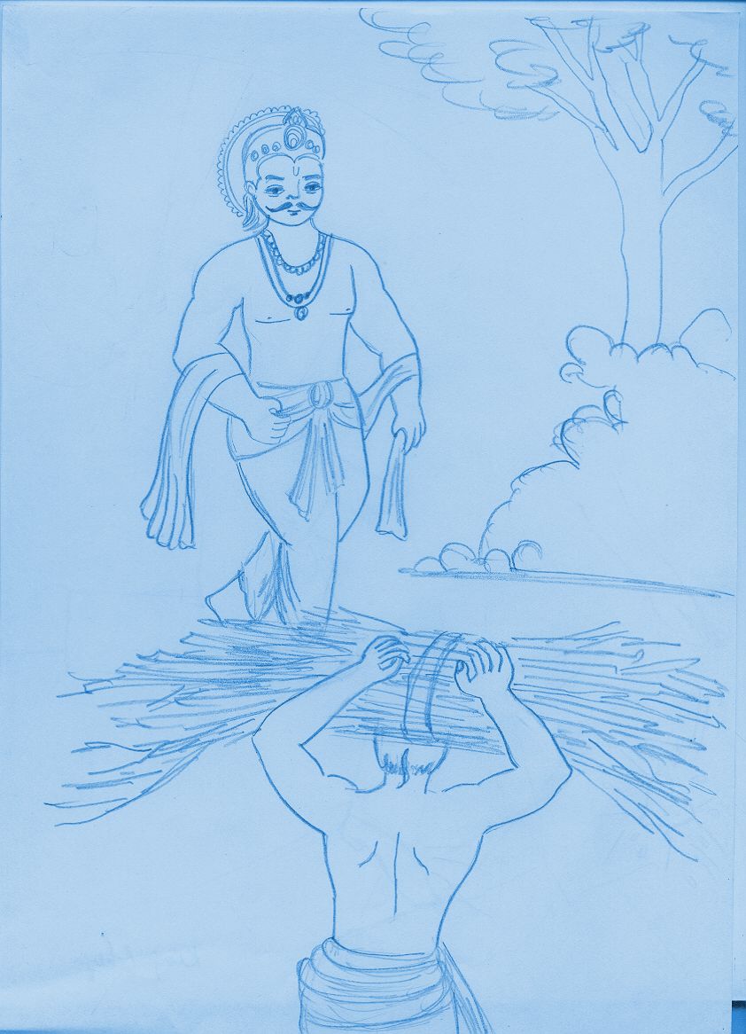 The King thought about the huge sum of money that was there in his coffers. How could a man who earned six paise a day think himself to be a king? How could he look so happy? The King thought of the numerous worries and problems that besieged him. He wanted to know more. So he asked the old man, “If you earn just six paise per day, what are your expenses? Are you really King Bhoja?”