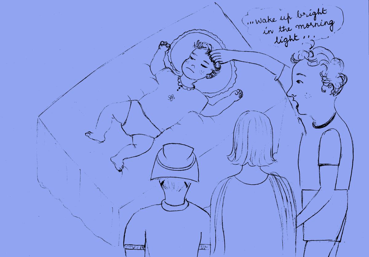 Once they reached the crib where the tinny little baby lay almost lifeless, Karan started stroking her hair with his gentle hands. He started singing to his little sister, just as he used to, before she was born.