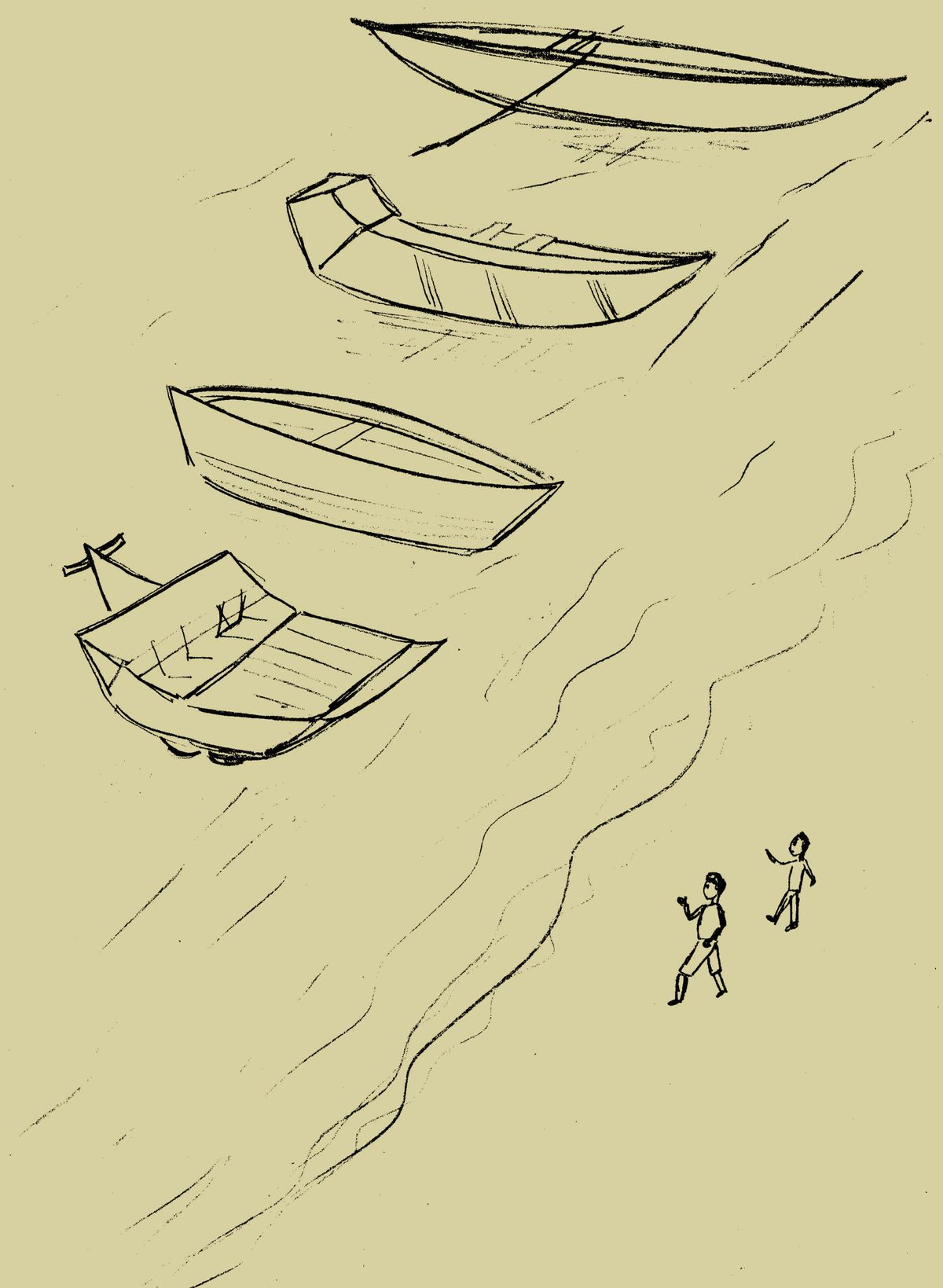 There was a vendor, renting out motor boats. Sreeman said, “That’s a nice one. Let’s take it.” “No,” said Uncle. “It’s much too noisy. Let’s look further.”