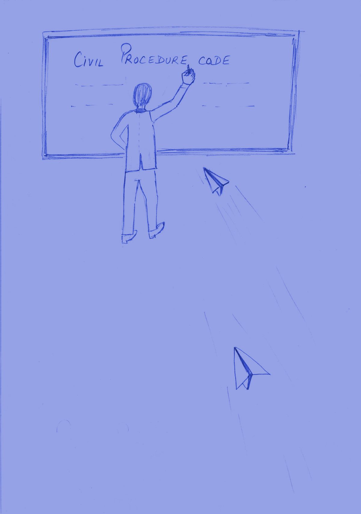 A young professor at a college of law had just started his lecture. He was giving them an introduction to the Civil Procedure Code of India. He had his back turned to the class as he wrote something on the white board with a marker. Just then a swift paper plane landed on his ear.