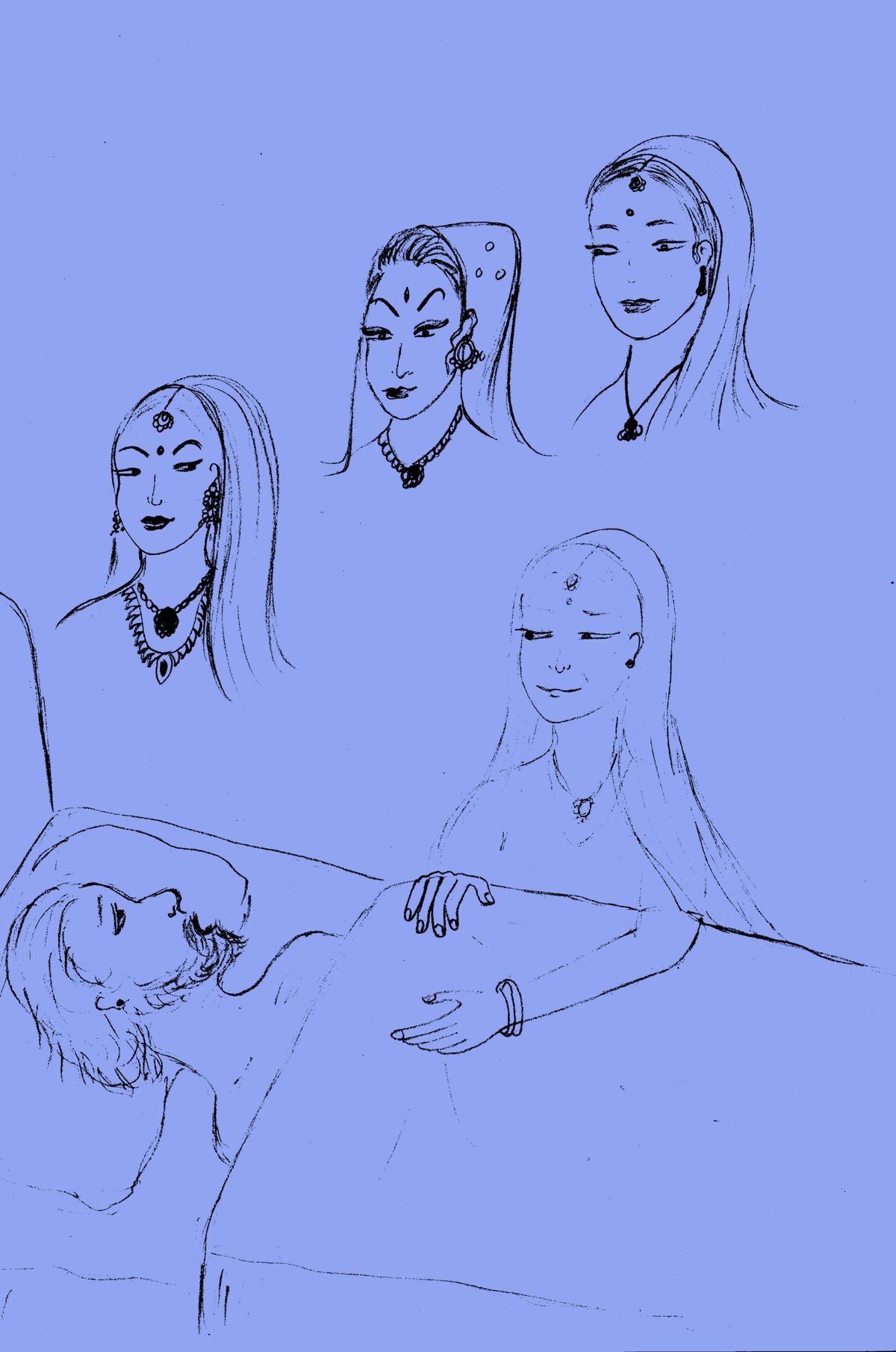 A king had four wives. He loved the fourth one the most. She was very beautiful and many a king would give anything to have her. He gifted her with the finest of robes and jewellery to wear. He fed her exotic fruits and delicacies prepared by the best chefs. But he always feared that she would leave him one day, because she was very vain and did not think much of the king.