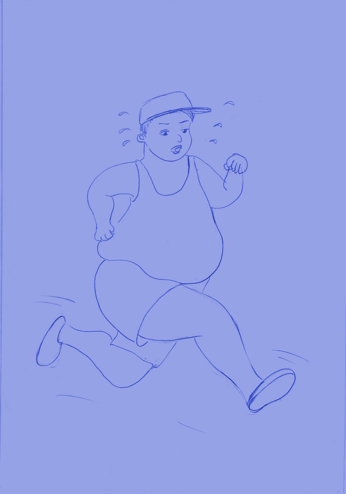 The young fellow ran all day and collected the sweat from his brow in a little container. With a lot of difficulty, he had enough to make a paste with the powder. He smeared it on to his tummy etc. and rubbed it well.